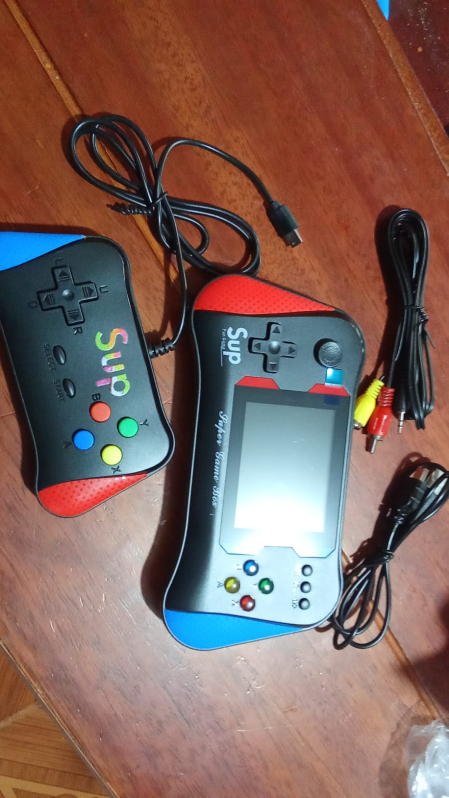 - El paquete contiene un gamepad, que se puede conectar a una pequeña consola portátil para que dos personas jueguen.